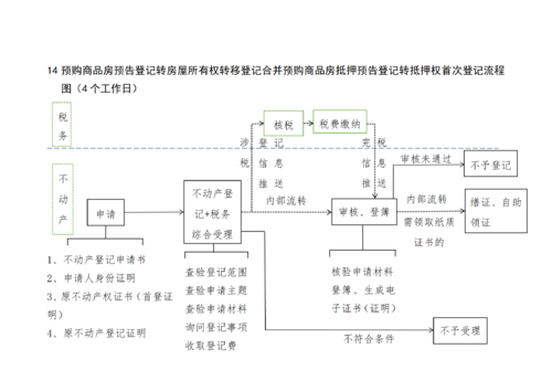 预购商品房预告登记转房屋所有权转移登记合并预购商品房抵押预告登记转抵押权首次登记流程图(4个工作日)